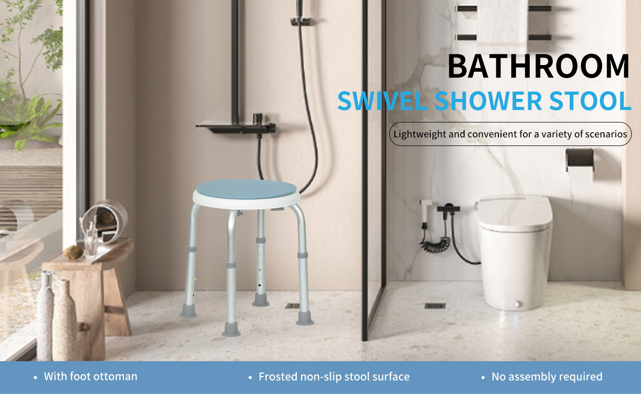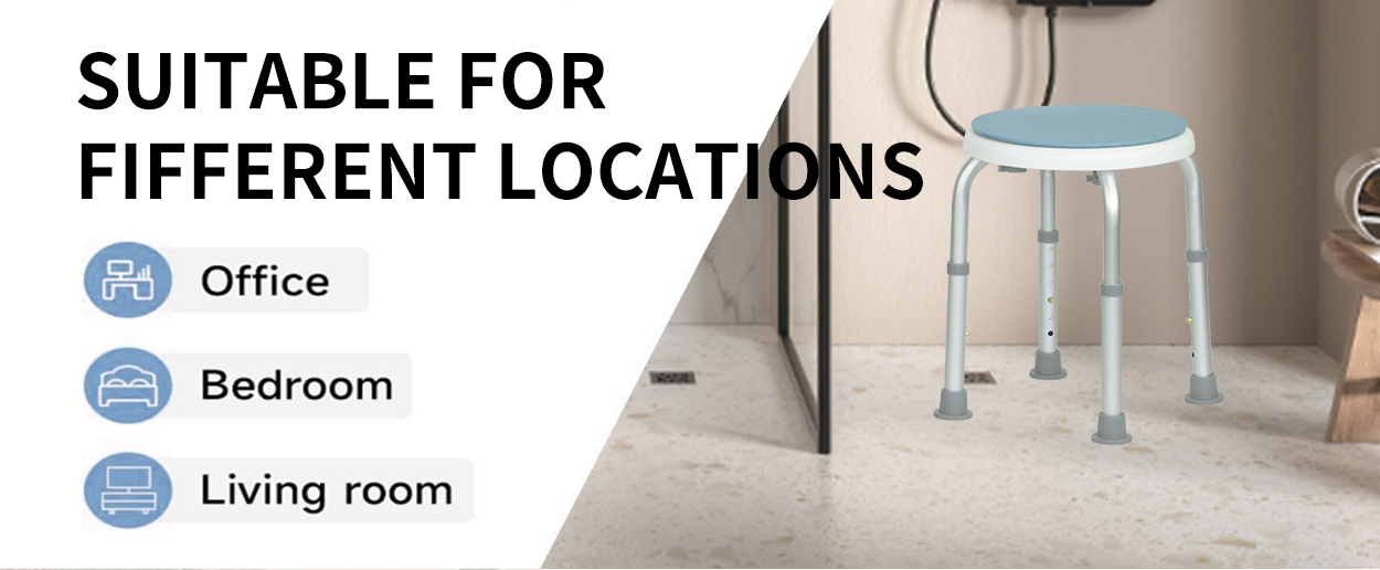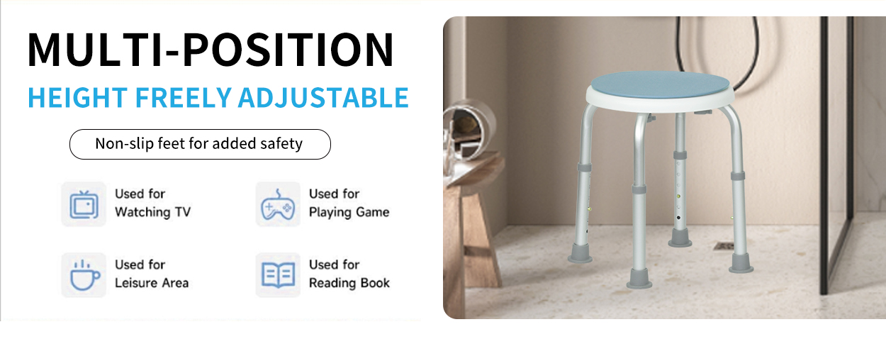 1.Swivel seat allows easy entry and exit from bathtubs. The shower stool’s round base is ideal for smaller tubs or shower stalls and provides users a comfortable and safe shower experience.
