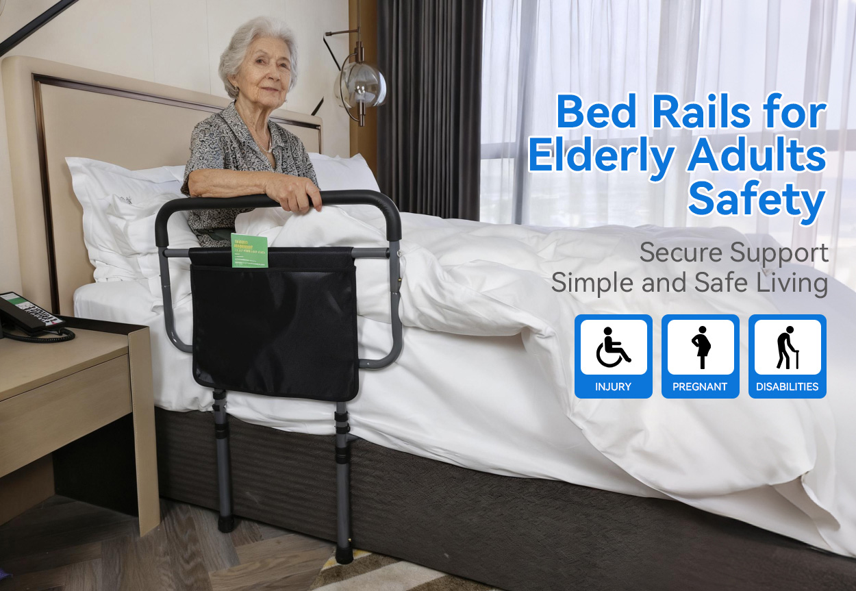 2.Tool Free to assemble and adjust: This safety handrail is height-adjustable and can be assembled in just 5 minutes without the need for any tools. The safety rail legs can be adapted to different bed size heights and the needs of users.