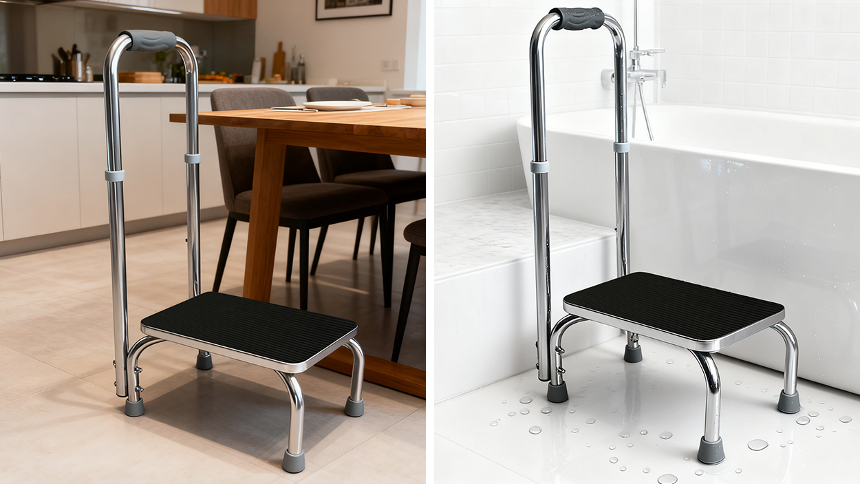 The Beiqin portable step stool is highly adaptable. Whether placed beside a table to assist with picking up items, beside the bed to help get up, or beside a bathtub for easy access, this foot step stool can handle all these tasks with ease .