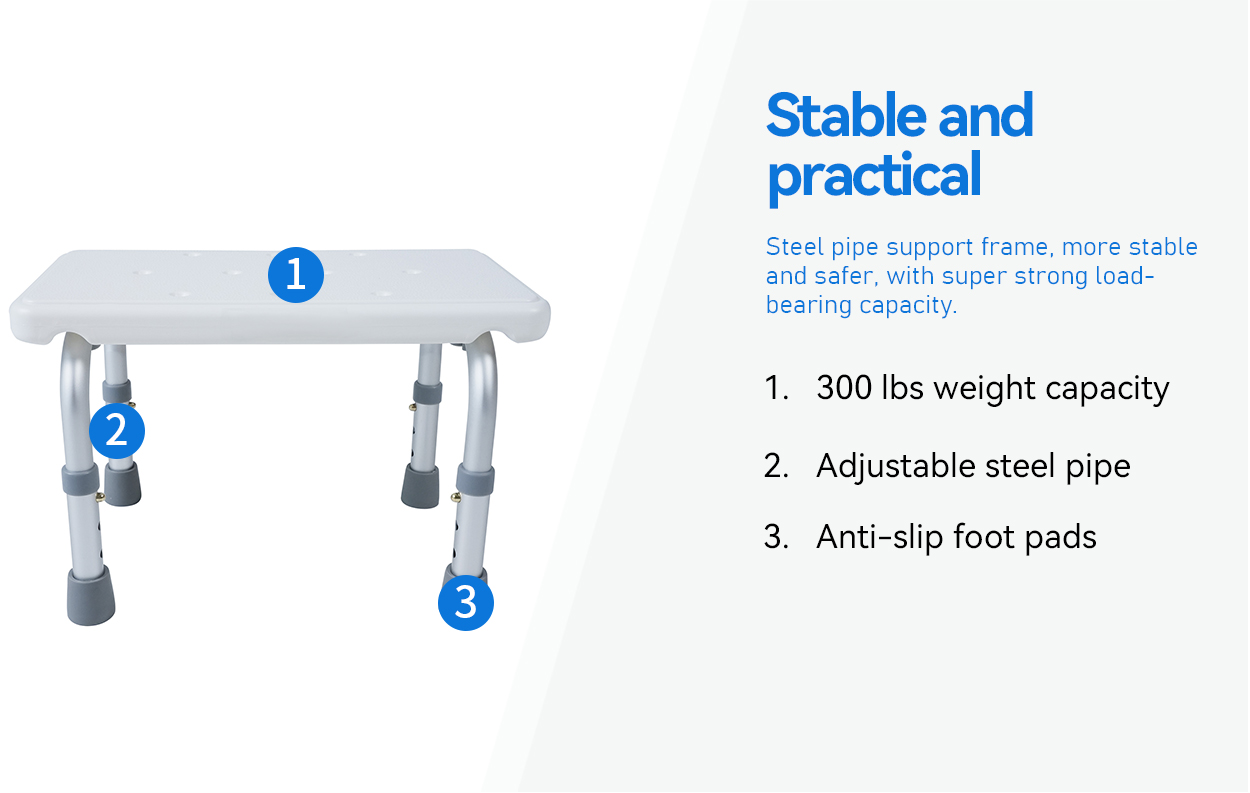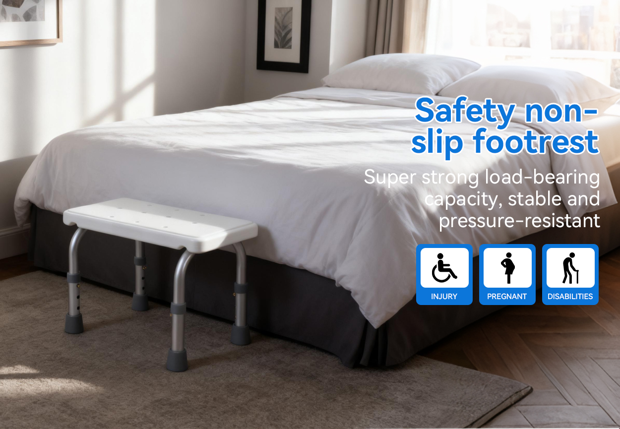 This foot step can be placed beside the bed for convenient getting up and sitting down in daily life, or it can be placed beside the bathtub to assist in safe entry and exit.